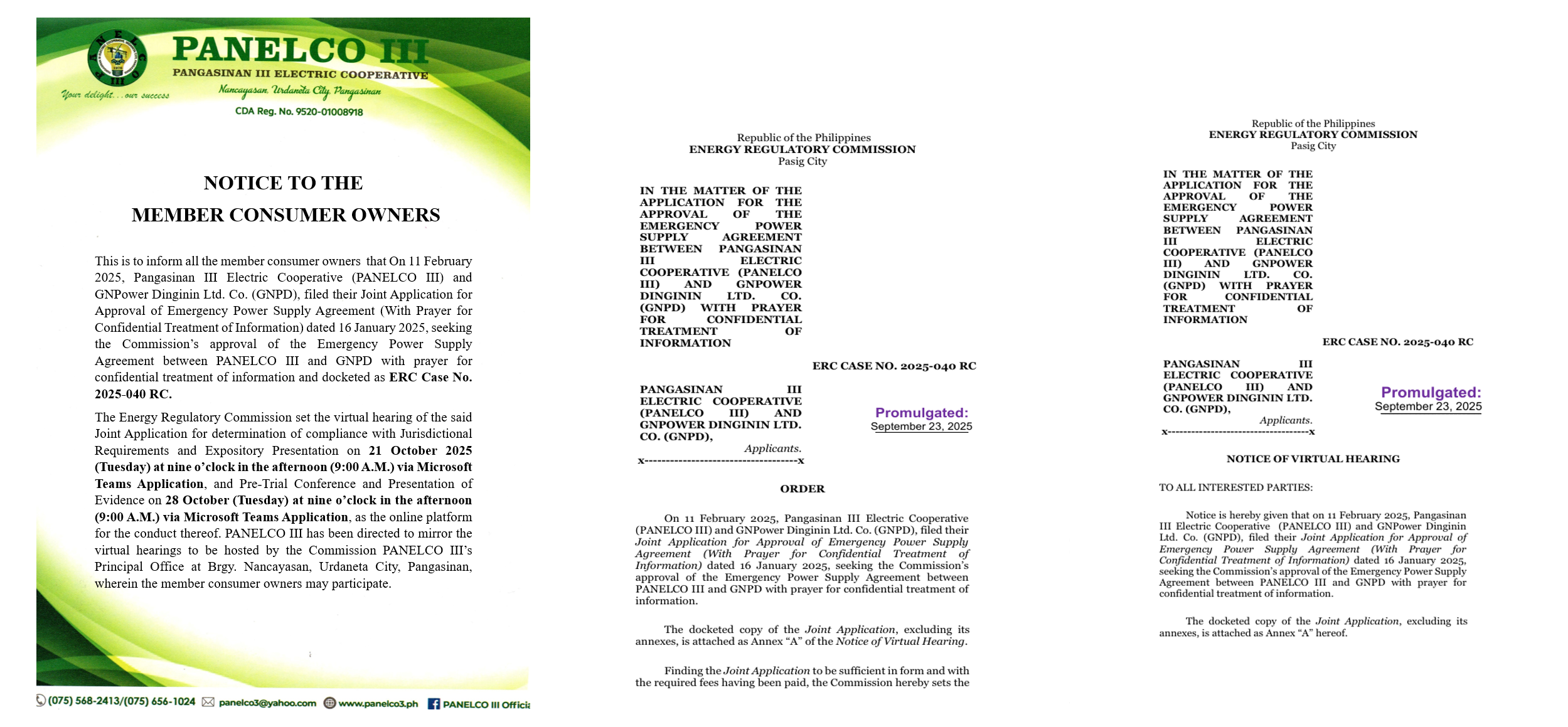 The Pangasinan III Electric Cooperative (PANELCO III) through the Bids and Awards Committee (BAC) invites interested bidders to apply for Eligibility and to Bid for the hereunder projects